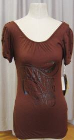 Kurzarmshirt von Fracomina. Mit Aufdruck und Perlen an Ärmeln und Rückenpartie.Grösse S und M. Aus 95% Baumwolle, 5% Spandex. In den Farben dunkelbraun, violett, dunkelgrau und schwarz. | Fr. 98.00 |